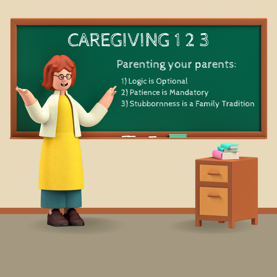 “Parenting your parents: where logic is optional, patience is mandatory, and stubbornness is a family tradition.”